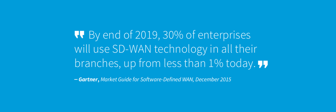 The good news for users in the branch is that the adoption of SD-WAN is on the rise. According to Gartner, “By end of 2019, 30% of enterprises will use SD-WAN technology in all their branches, up from less than 1% today.” That’s a massive adoption rate!