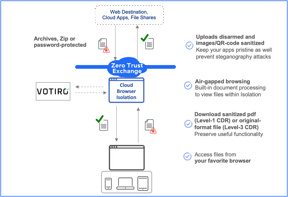 Zero Compromise with Content Disarm and Reconstruction (CDR), powered by Zscaler Browser Isolation and Votiro
