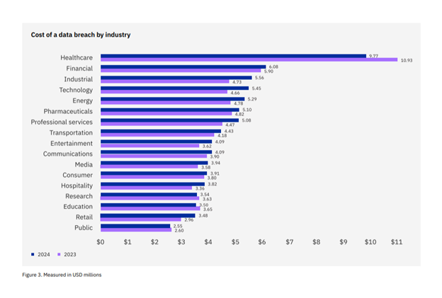 Fig: Cost of data breach by industry, IBM Cost of a Data Breach Report 2024