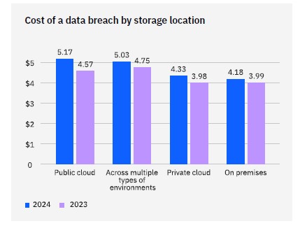 Fig: Cost of data breach by storage location, IBM Cost of a Data Breach Report 2024
