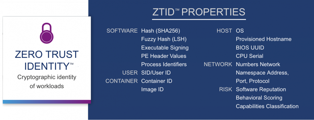 Zscaler Workload Segmentation, for example, computes a cryptographic identity for every workload. This identity takes into account dozens of variables, including hashes, process identifiers, behaviors, container and host ID variables, reputation, hostnames, and more. This identity is verified every time a workload attempts to communicate and is paired with least-privilege policies when determining whether or not to grant access.