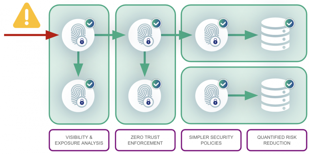 The result? Dramatic risk reduction and elimination of attack surface. Malicious software will be unable to authenticate and will be kept off the network entirely. And if a bad actor is able to compromise a workload, the attacker's ability to move laterally across the network will be severely curtailed.
