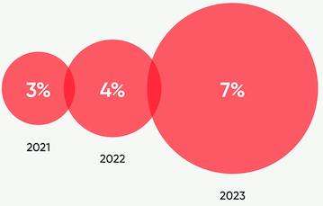 In 2023, we’ve seen an increase in companies focused on maximizing growth as it relates to productivity and innovation. Employers were looking to optimize employee experiences and reduce costs in hopes of driving increased revenues. According to Great Place To Work, 2023 revenue per employee for Fortune 100 Best Companies increased by 7% YoY, up from 4% from 2022.