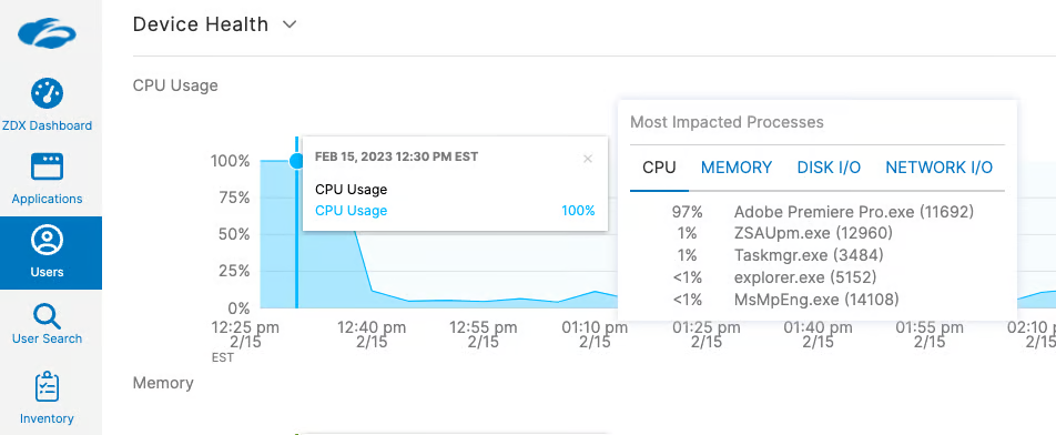 1. Get endpoint performance insights with detailed process level monitoring: With ZDX Advanced Plus you are now able to get time-series data about the top five processes which are consuming the device CPU, memory, disk IO and network IO. This powerful enhancement enables ITOps teams to quickly get to the offending process which could be negatively impacting the end user’s experience. Watch this video to see it in action!
