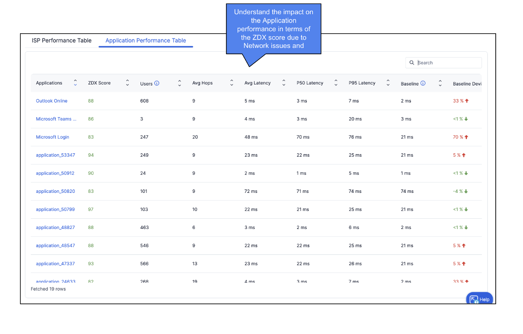 Analyze trends in last-mile ISP and application performance using ZDX scores to identify patterns and assess performance, enabling timely and informed action.