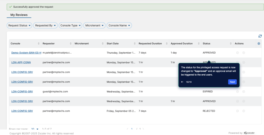 - Explore Zscaler’s Interactive Product Tours: Learn more about Zscaler’s End-user initial approval capabilities that make Zscaler a leader in secure privilege access.