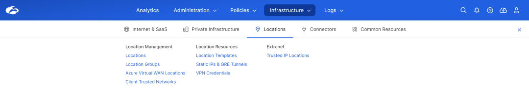 How it works: Locations represent points from where an organization’s traffic is sent to the Zscaler Zero Trust Exchange. This includes IPSec/GRE tunnels or automated branch and cloud connectors that handle traffic forwarding. Unified Locations provides a single workflow and console view of Zero Trust connectivity, allowing administrators to manage branch connectors, cloud connectors, and IPSec/GRE tunnels from one interface.