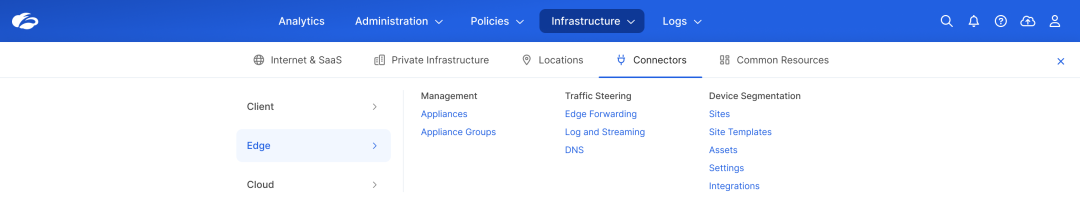 Secure connectivity management for all locations. Manage all locations—cloud internet edges, branches, data centers, OT/IoT-connected factories, and legacy SD-WAN connected locations—in one view. This unification allows you to centralize network, security, and device policies with greater simplicity, agility, and consistency. No more toggling between interfaces or relying on separate tools for site-by-site administration.