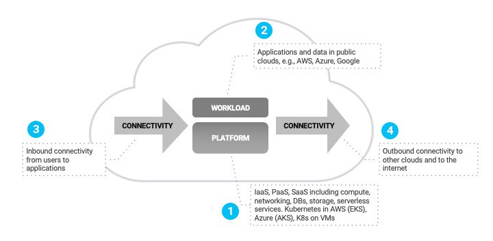 There are two forms of connectivity for most cloud workloads: cloud-to-internet and cloud-to-other-clouds or private data center.