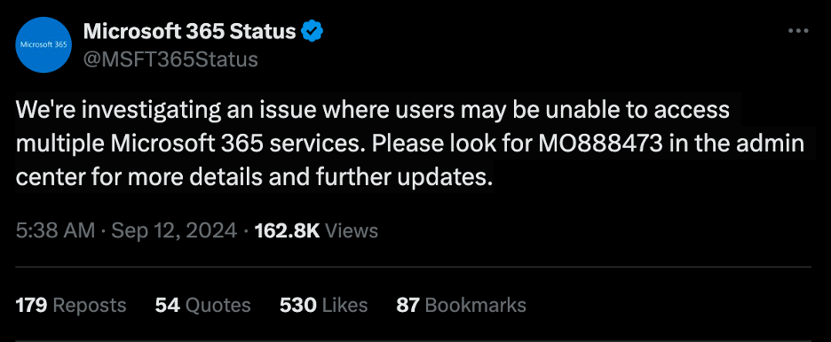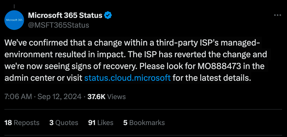 Microsoft posted a message on the X platform revealing an issue where users may be unable to access multiple Microsoft 365 services. This problem was resolved by 7:06 a.m. PDT, aligning with the ZDX data mentioned. Microsoft's services began to show signs of recovery shortly thereafter.