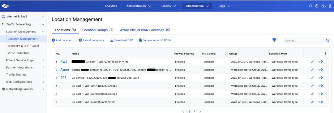 Consider your organization’s public cloud footprint. Many companies rely on expensive circuits or site-to-site VPNs to connect disparate environments for server-to-server communication. Just as we’ve replaced traditional VPNs for user access, Zscaler’s Zero Trust Networking portfolio does the same for non-human workloads. Each set of Cloud Connectors or Branch Connectors you register creates a Location object in Zscaler. This lets you segment policies, generate detailed reports, and exert granular control over the sources behind these connectors. For instance, you might have AWS regional hubs where Cloud Connectors reside, while workloads spread across many VPCs connect via a Transit Gateway. Azure environments might do something similar with VNET Peering or Virtual WAN Hubs.