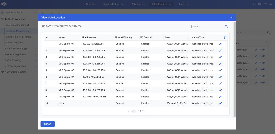 Image 2: Zscaler Sub-locations based on VPC CIDRs: