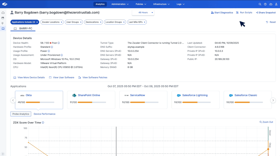 Together, Device Scoring and Remediation transforms ZDX from a visibility platform into an active experience management system — one that not only detects when the device has performance issues but also has the capability to fix it!
