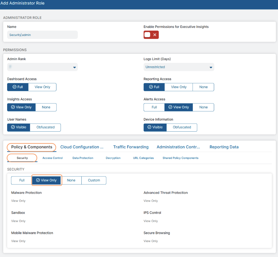 Zscaler recommends that customers define roles in the ZIA Admin Portal before adding administrator accounts since each admin created requires a role being applied to it—and we’ve offered this ability for many years now.