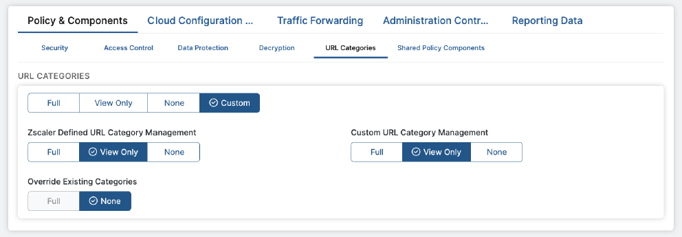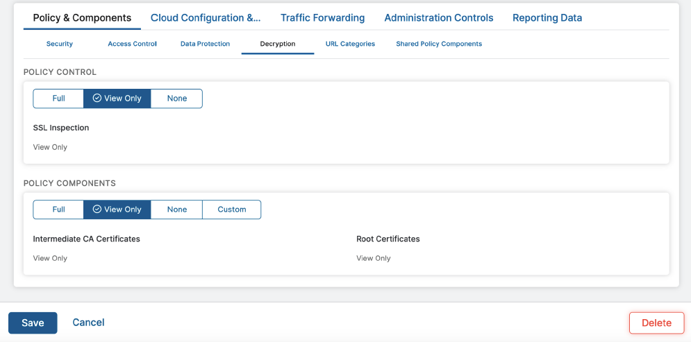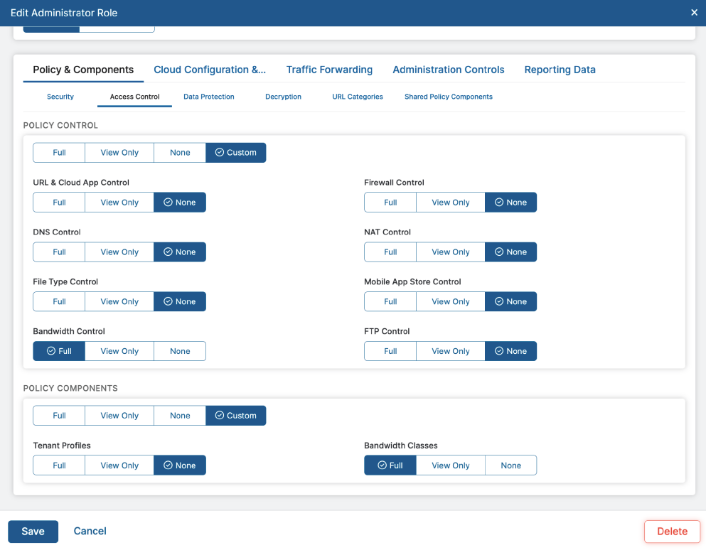 Now when the Super Administrator creates a new admin account in the ZIA Admin Portal, they can define what policy and reporting that admin accounts can create, edit and view—or not access at all. Customers can also retroactively apply granular RBAC criteria to pre-existing admin accounts.