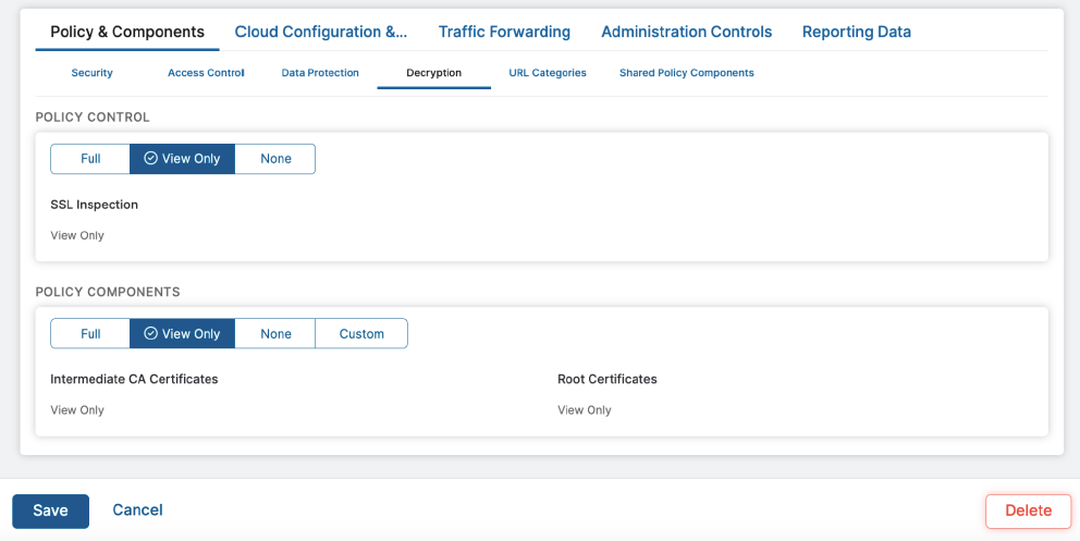 Data Loss Prevention admins should have view-only access to SSL Inspection policy: Peter is a DLP admin with privileges to add new or modify DLP policy. Peter would like to have "view only" rights to read SSL Inspection policies to determine if DLP rules will work.