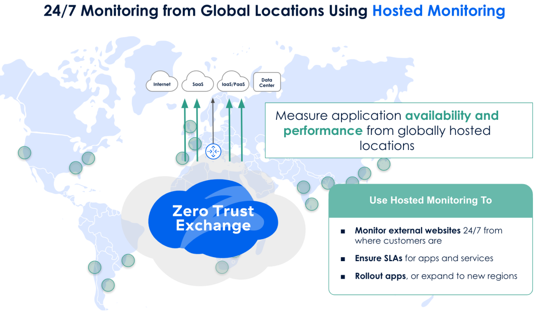 Leveraging the Zscaler Zero Trust exchange, which spans over 150 data centers across six continents, you can now securely monitor the performance of your critical business and customer-facing services around the clock from multiple locations.