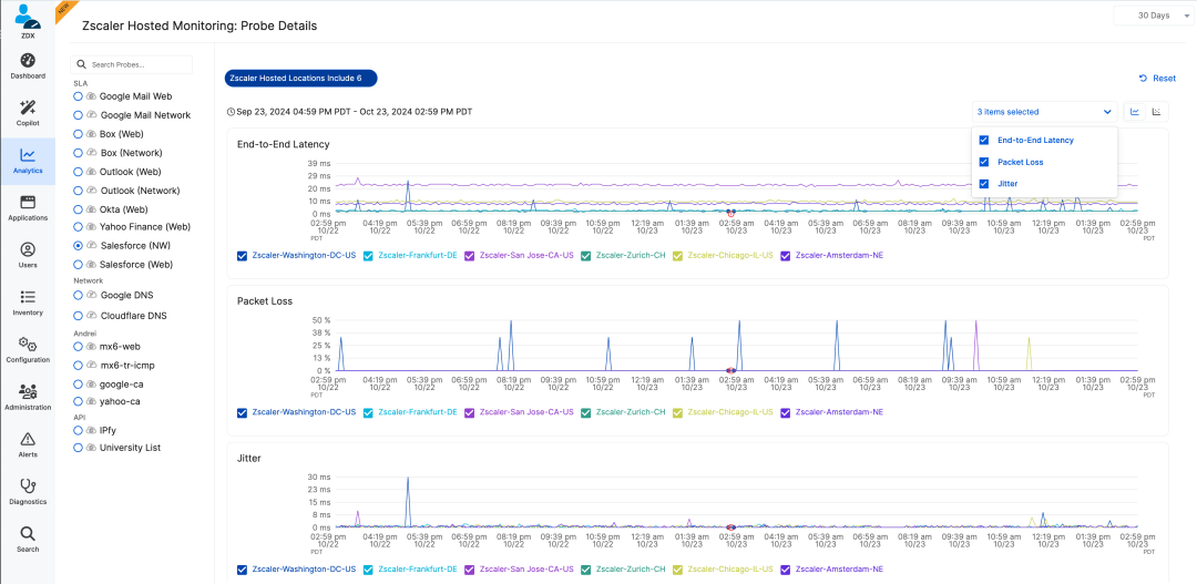 Instantly analyze performance metrics in Zscaler Hosted Monitoring with:
