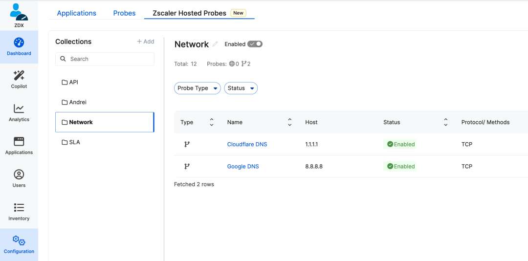Zscaler Hosted Monitoring is a synthetic monitoring tool that ensures the performance and availability of critical applications and API endpoints. It operates through hosted probes from dedicated data centers across the globe, enabling continuous monitoring around the clock. This system allows users to test key applications, verify SLAs, and ensure optimal performance of both consumed and provided applications.