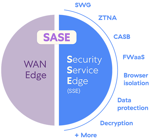 SSE, which stands for security service edge, is one part of a complete SASE implementation. Specifically, it is the portion of SASE focused on the consolidation and delivery of security services from the edge meaning from as close to the end user as possible. As a first step into the overarching SASE philosophy, SSE equips organizations with a single, cloud-delivered security platform that provides various integrated technologies locally, for any user, anywhere.
