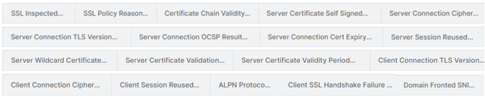 The foundation to address these questions starts from the raw log data. A robust logging plane capable of capturing high-fidelity and context-rich transaction level logs at scale (not aggregate level that other vendors may resort to due to architectural deficiencies) is imperative. Zscaler’s Nanologs capture 18+ unique TLS log fields for each TLS connection (decrypted, undecrypted, and failed) as seen here: