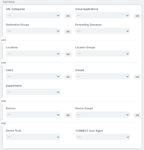 Zscaler’s rule-based engine, supporting over a dozen criteria, lets your creative juices flow. Just to name a few common examples:
