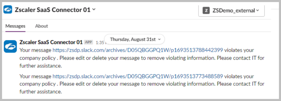 Zscaler has comprehensive inline and out-of-band coaching frameworks. The inline notifications are primarily used for real-time custom notifications to coach the violating user on violations against URL filtering, cloud app controls, cloud app activity controls, and DLP notifications for web inline and endpoint DLP policies with justification. The out-of-box coaching framework includes workflow automation, and a custom alert is sent to the violating user's email, Slack, or Teams messages, and to their manager or assigned escalation path based on the severity of the incident.