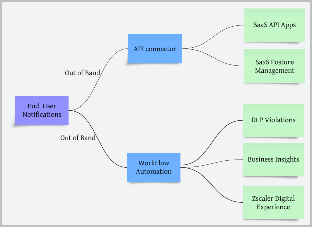 Let's review the out-of-band alerting for policy violations connected with APIs for Posture, Malware, and DLP controls. Workflow Automation is an application that enables governance admins to automate the management and resolution of Data Protection incidents, Business Insights events, and ZDX alerts within their organization.