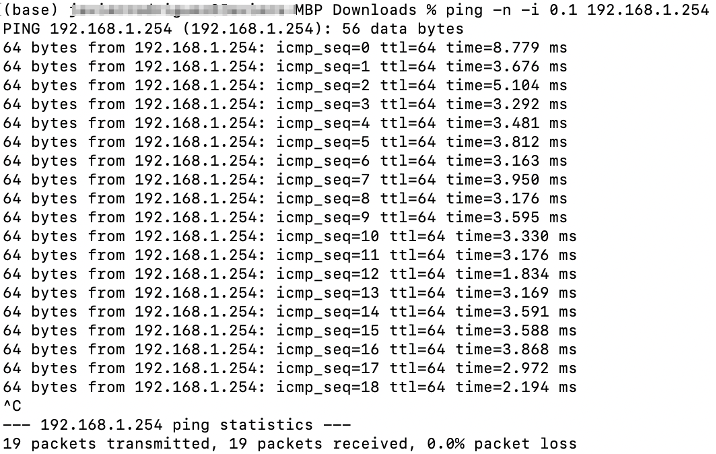 Test from device to Wi-Fi router: