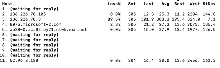 Traceroute from device to application: