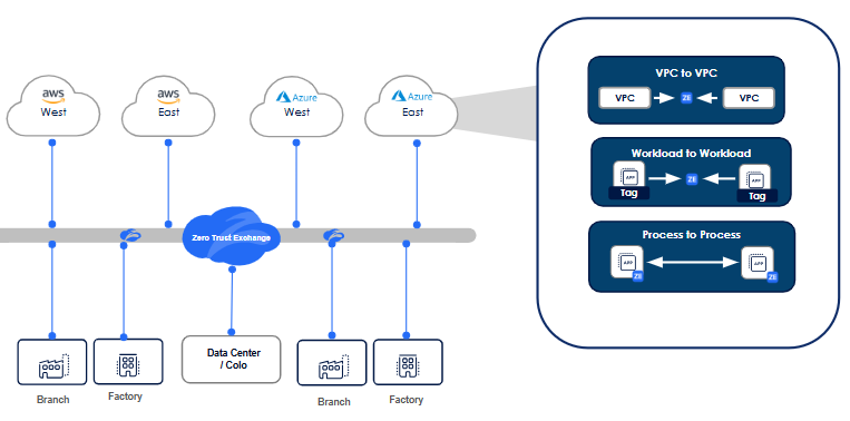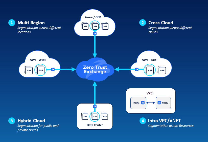 A host based approach now extends the Zscaler platform to segment processes deployed within a VPC/VNET. Customers can now extend the Zscaler zero trust architecture to segment processes deployed in the hybrid cloud.
