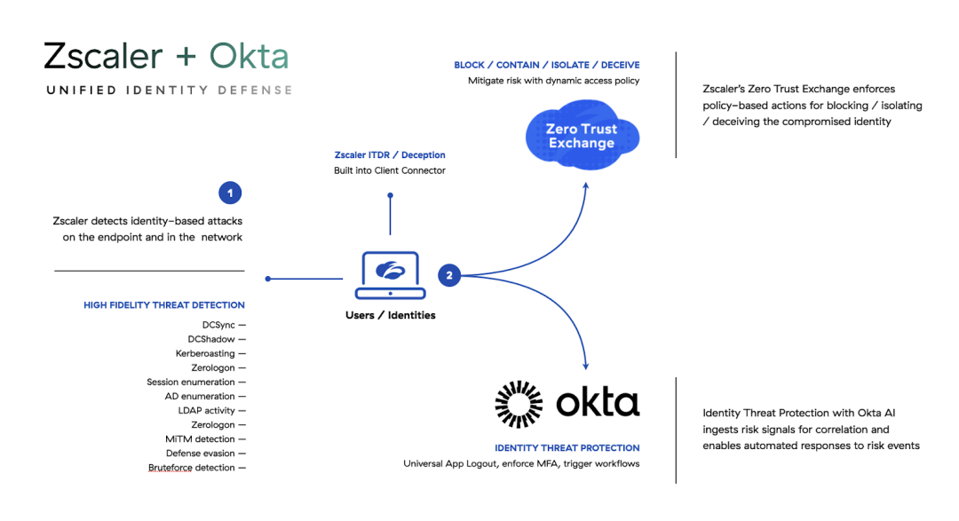 Zscaler and Identity Threat Protection provide a pragmatic and holistic approach to security against identity-based attacks that enhance existing defenses and allow real-time response to limit damage and mitigate risk.