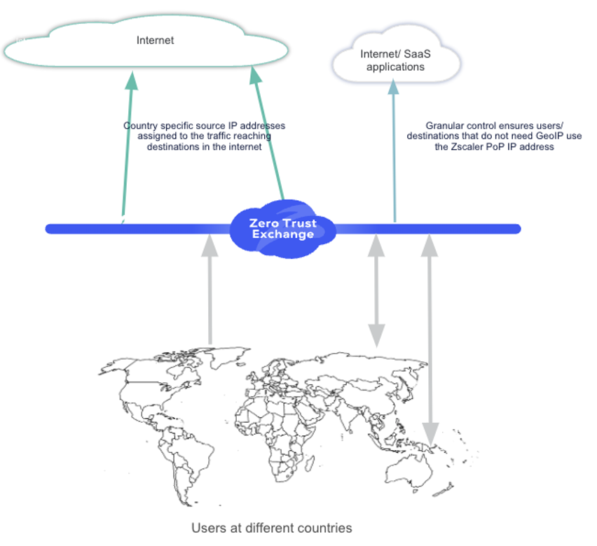 There are more than 200 countries in the world, and while Zscaler has a global presence, it is unlikely there will ever be a Point of Presence in all 200+ countries. The solution to the problem of delivering content to these countries lies in assigning a source IP address to traffic that originates from these countries, to an IP address that is perceived as belonging to the country.