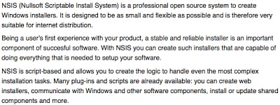 F-Prot identified the binary as being packed by NSIS. NSIS is the Nullsoft Scriptable Install System, which states the following capabilities: