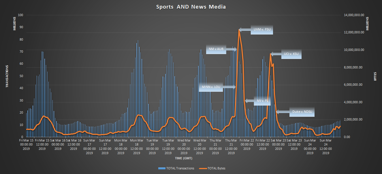 Figure 1: Sports streaming media during NCAA Tournament for the past 10 days.
