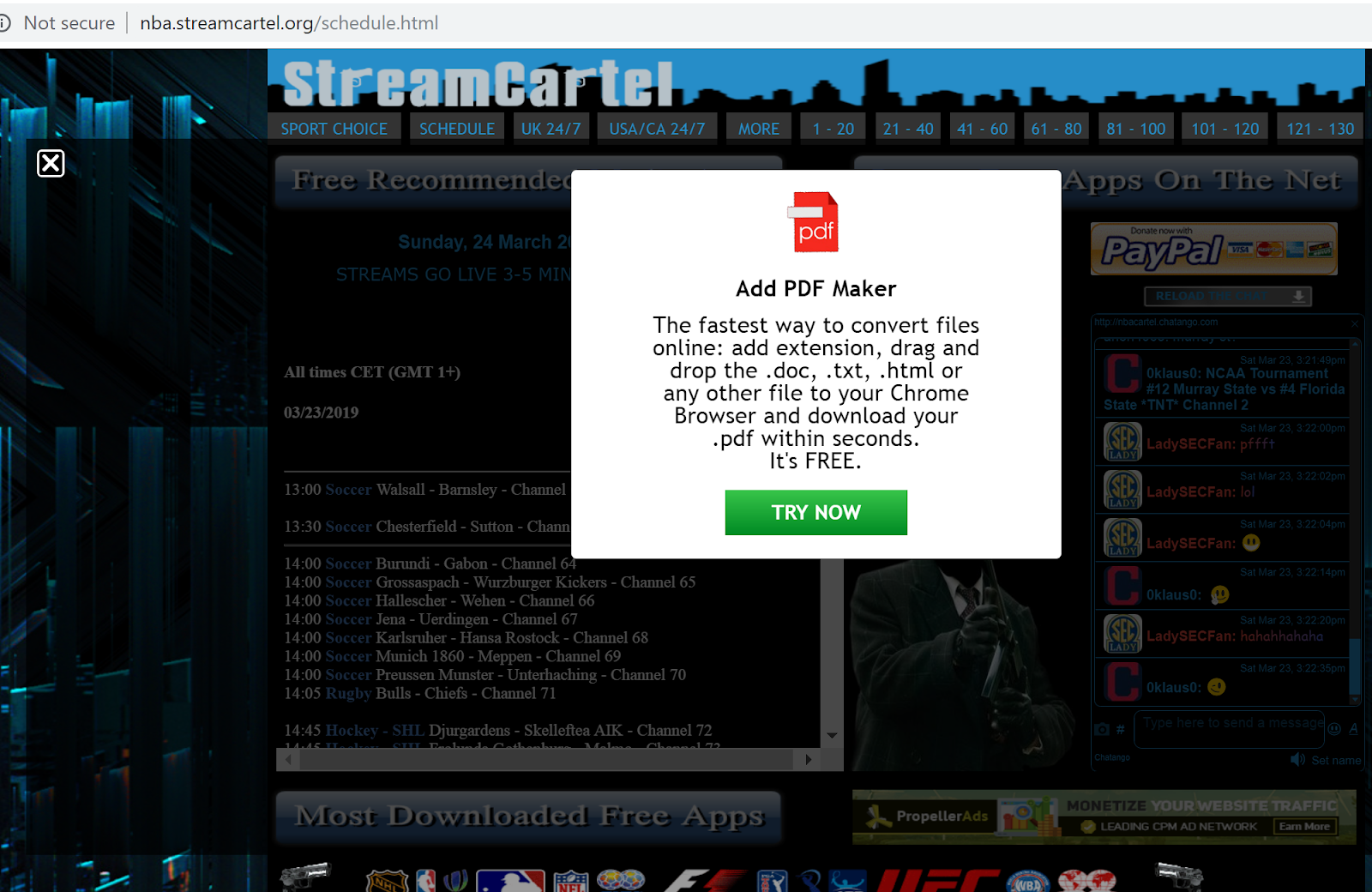 Figure 4: Streamcartel[.]org's NBA schedule page displaying a fake plugin ad.