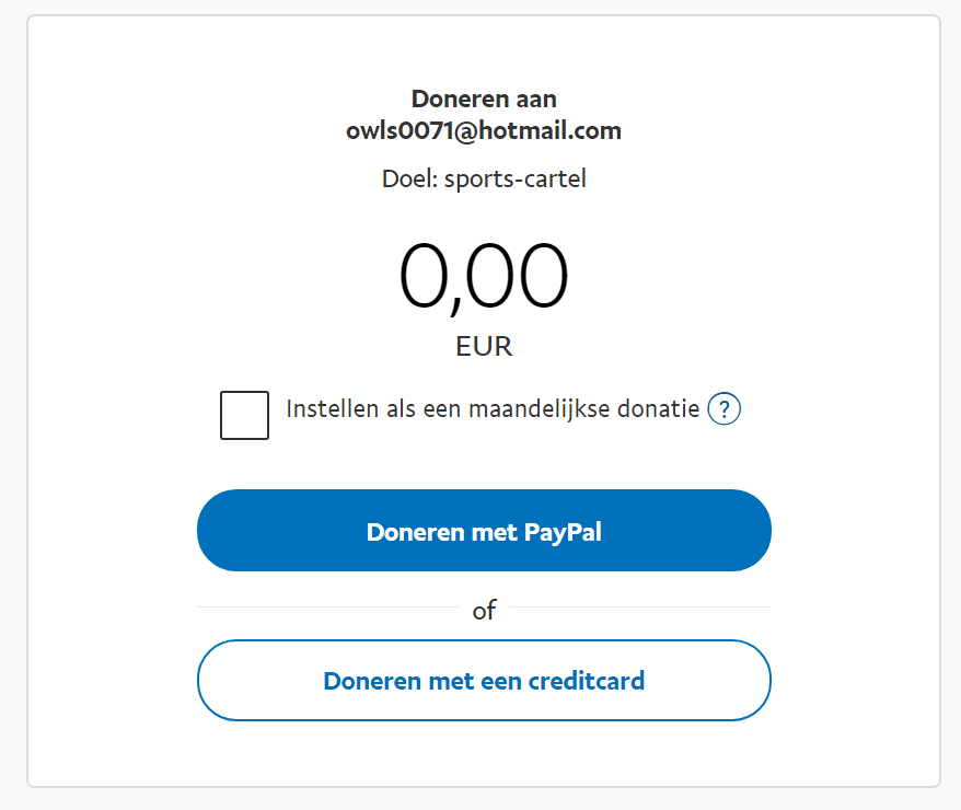 Figure 6: PayPal donation page for [email protected] (in Dutch).