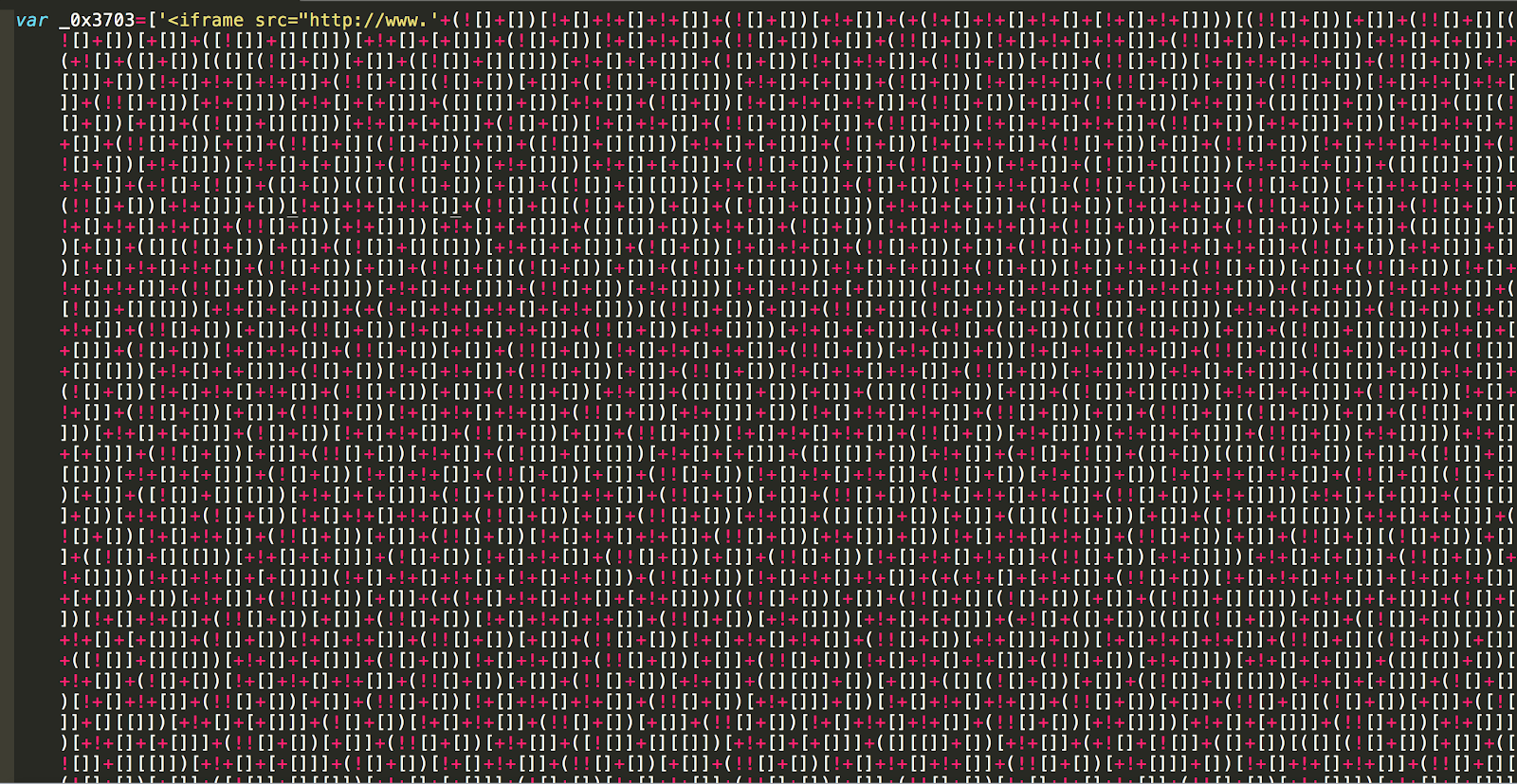 Figure 7: JavaScript obfuscated using JSF*ck, served by sawlive[.]tv.