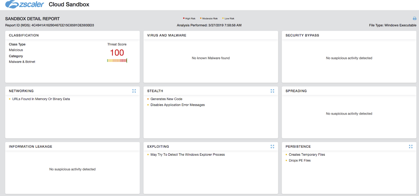 Figure 9: Zscaler Cloud Sandbox report for “Fake Flash Player”.