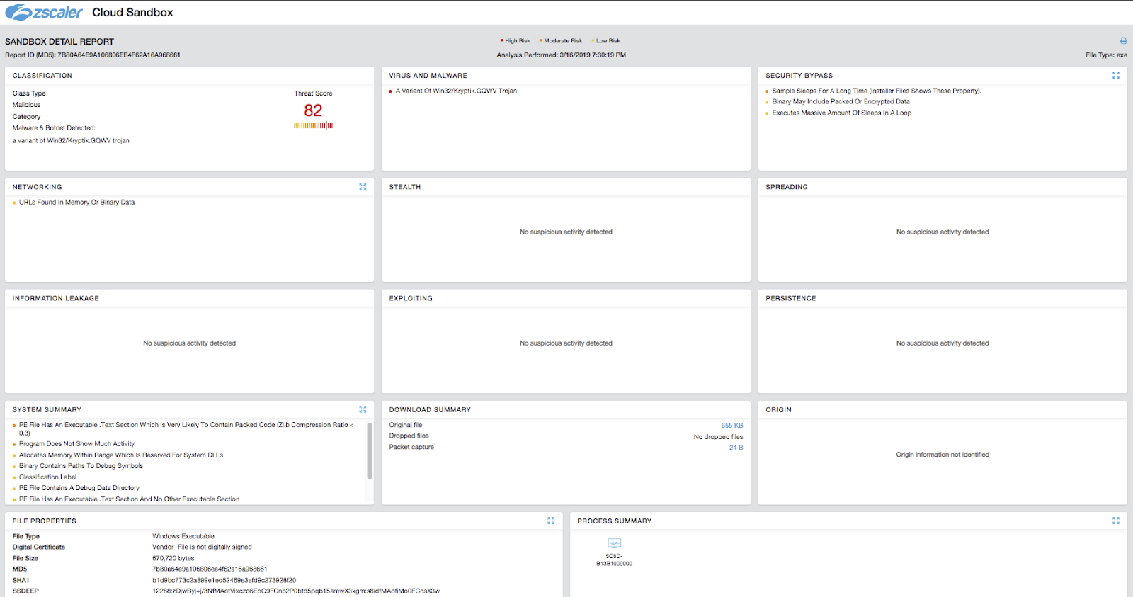 Figure 11: Cloud Sandbox Report for Nymiam malware sample: 7B80A64E9A106806EE4F62A16A968661