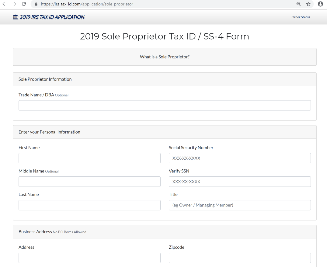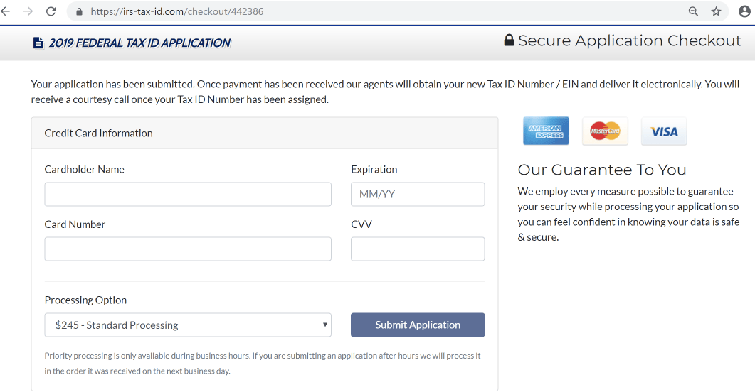 Figure 5: “Apply for EIN” phishing template used by multiple sites