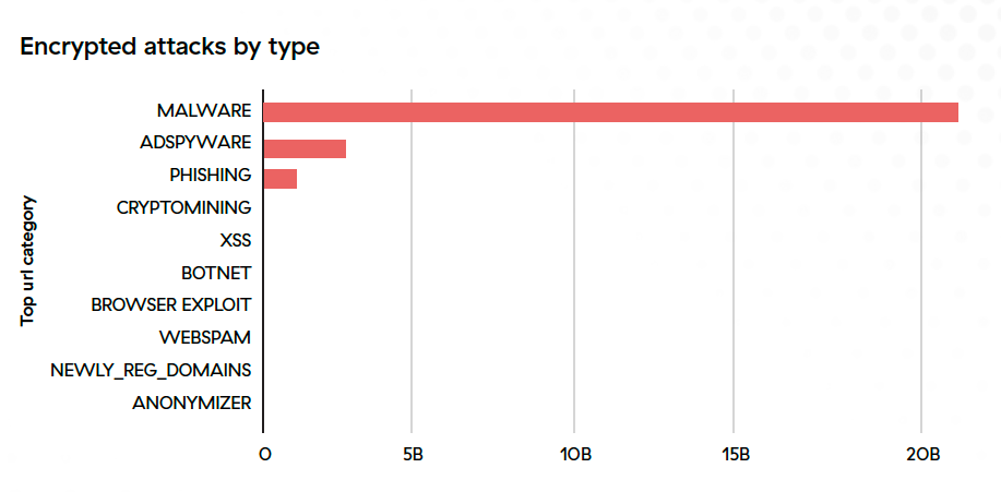 Figure 1: Distribution of 2022 encrypted attacks classified by threat type