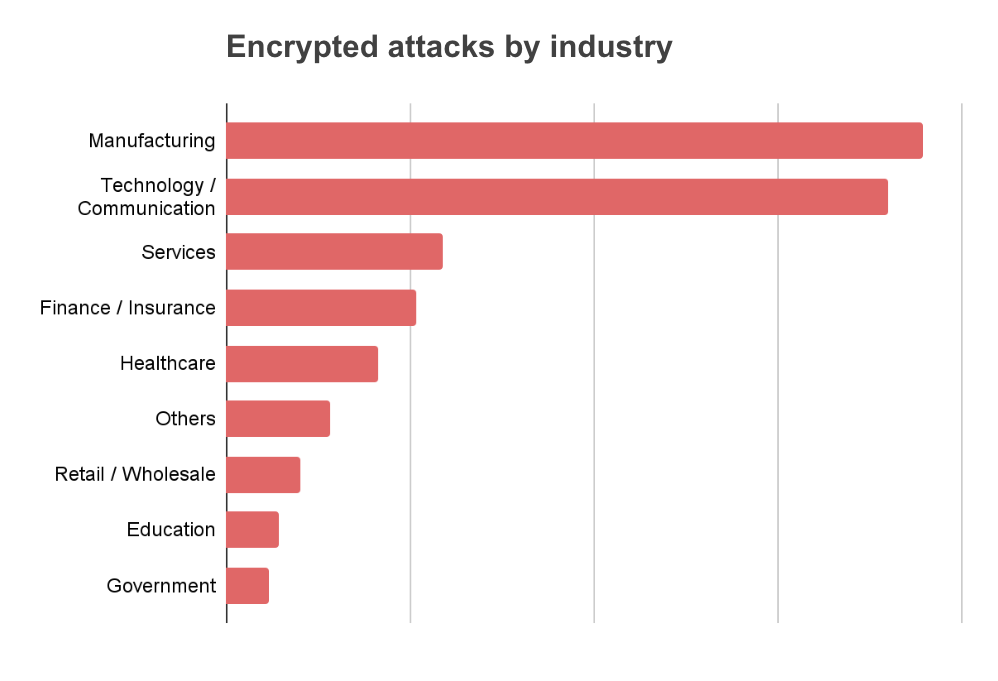 Figure 3: Top industries by vertical targeted by encrypted attacks in 2022