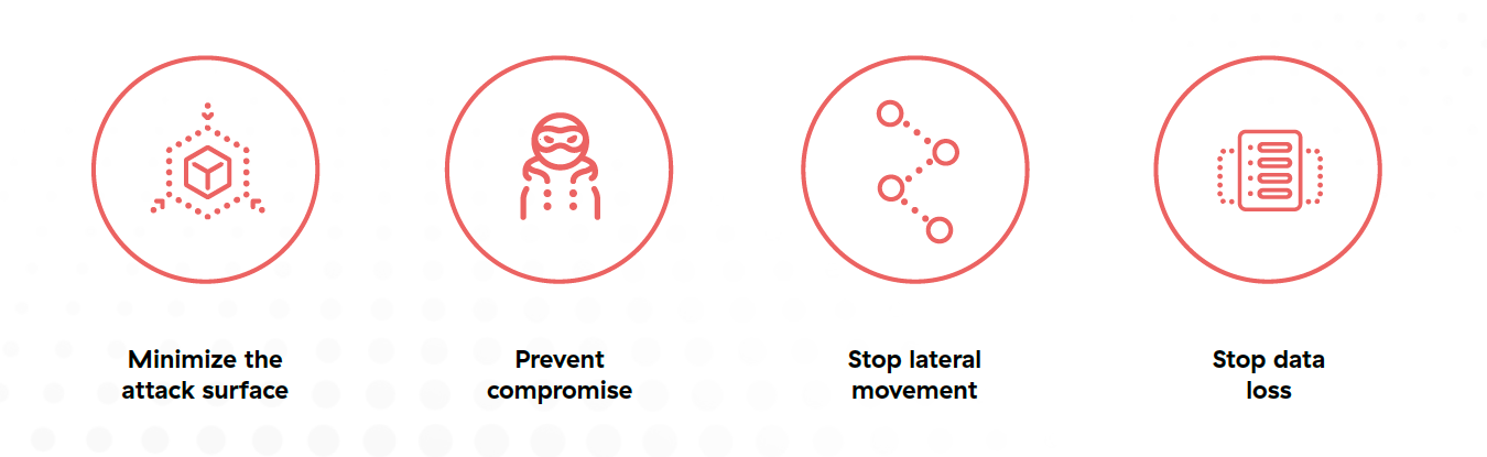 3. Stop lateral movement by connecting users directly to applications (rather than the network) to reduce the attack surface, and contain threats by using deception and workload segmentation.