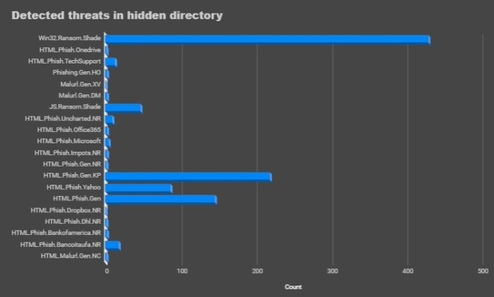 The graph below shows the Shade/Troldesh ransomware under the hidden directory that we detected last month.