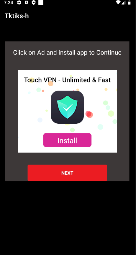 The clickendra.class asks the user to perform a few more steps to get started with the app, then displays some Ads to the user and finally shows a message that Tiktok will start in 1-HOUR.