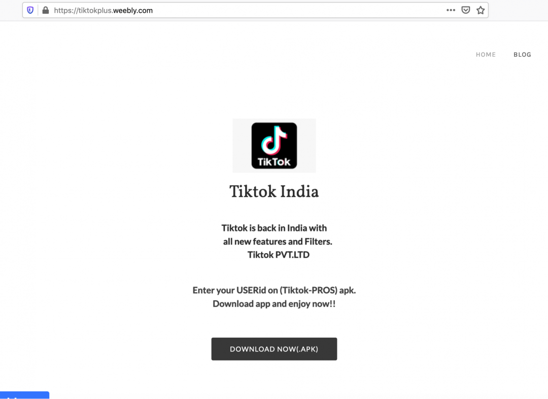 As an example, in one of the instances, the shortened URL redirected the user to the website: https://tiktokplus[.]weebly.com/ which looks like shown in Figure 3.