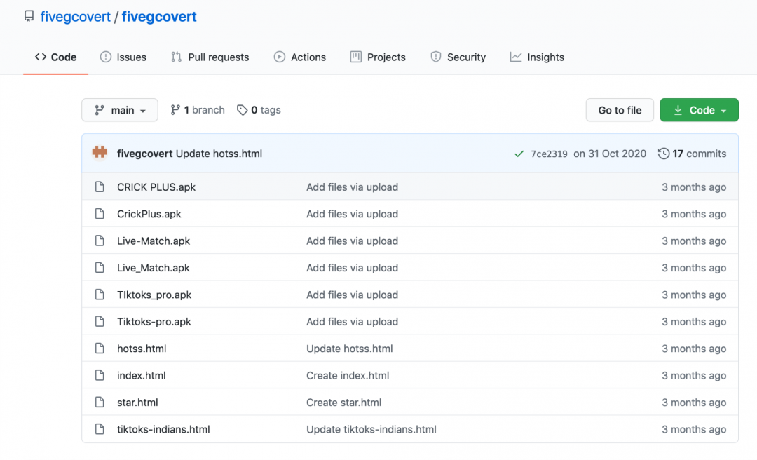 We identified several GitHub accounts which are hosting malicious Android mobile apps (APK files) and web pages which are used actively in this campaign.