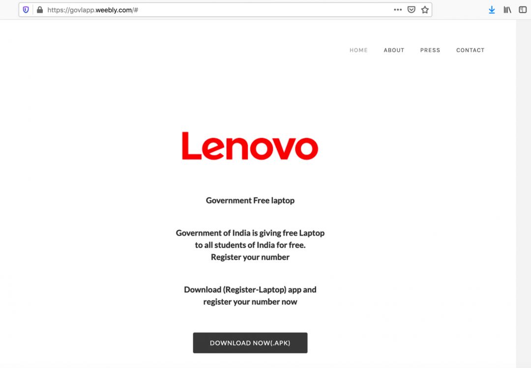 The latest theme used by this threat actor is related to “Free Lenovo laptop scheme by Indian Government”.