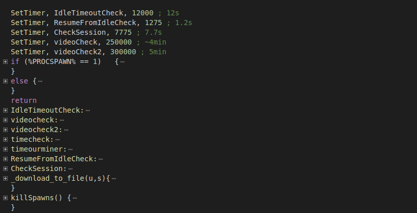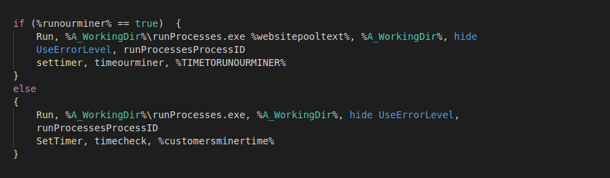 When conditions are met for running the miner—for example, when the system is idle and no video or audio is playing—it will run the miner using runProcesses.exe. This will also ensure that the end user will not notice any obvious system slow downs from miner operation.